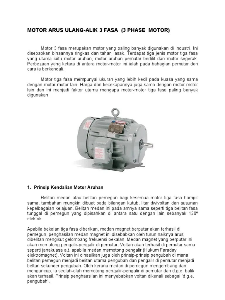 · animasi motor ac jenis sangkar tupai. Rotor ialah bahagian motor elektrik anda yang bergerak. Prinsip kendalian motor ac 1 fasa. Motor au tiga fasa lazimnya digunakan dalam sektor industri. Pemegun motor aruhan tiga fasa terdiri daripada tiga bahagian utama:. Iaitu satu belitan mewakili satu fasa.